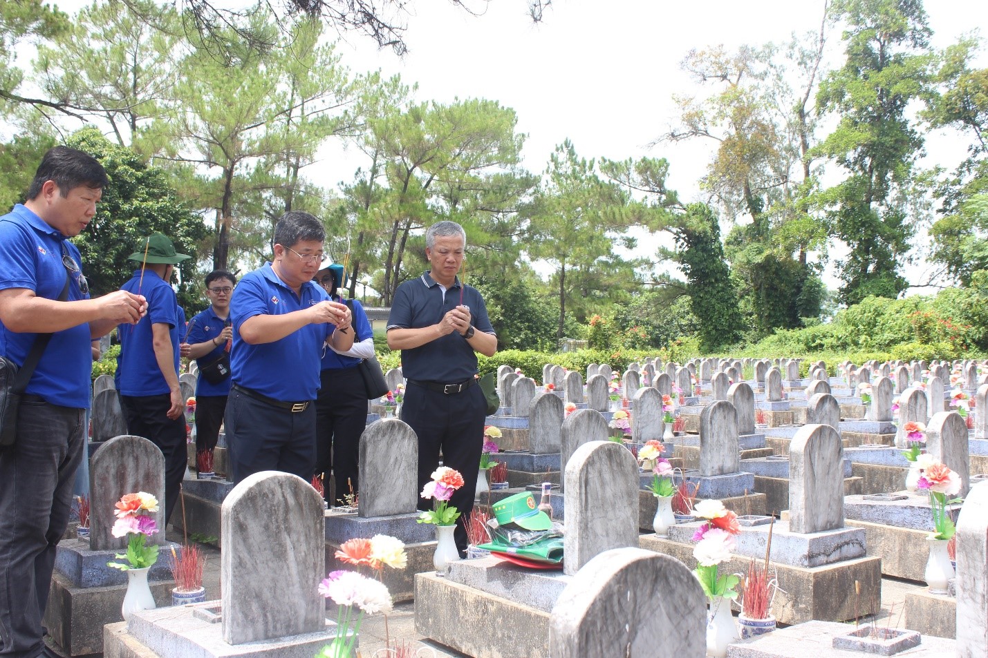 Đoàn công tác chụp ảnh lưu niệm tại Nghĩa trang Đường 9